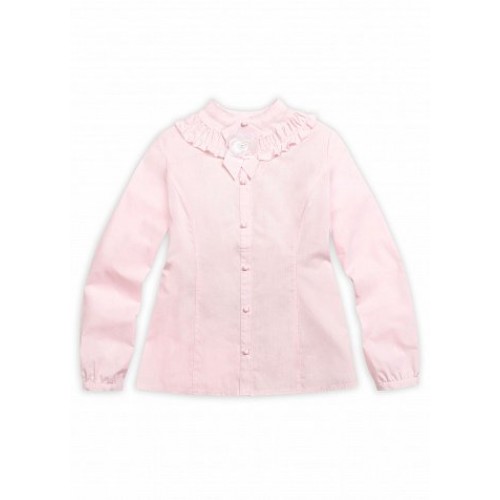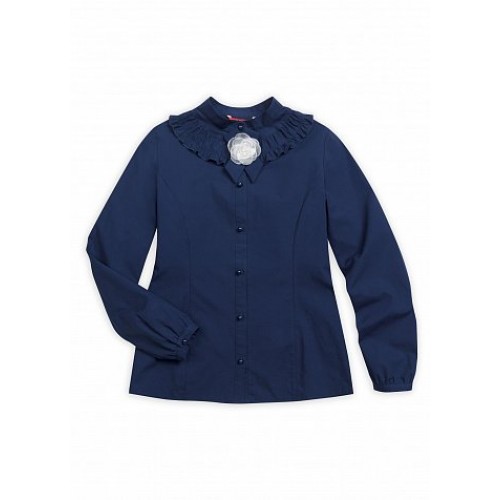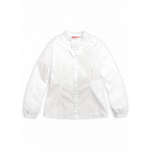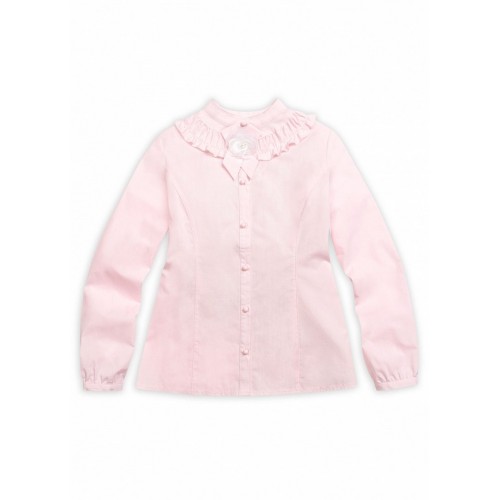 Блузка для девочек. Классическая блузка с длинным рукавом на узкой манжете. Воротник-стойка и декоративная сборка с рюшей в воротниковой зоне. Съёмный элемент в виде шикарной розочки из органзы на ленточке из основной ткани, крепится на пуговицу на планке. Коллекция - школа.