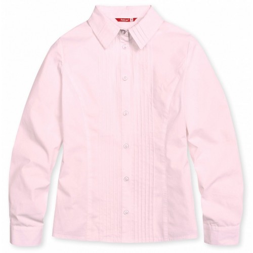 Строгая классическая рубашка с декоративными застроченными ритмичными складками вдоль планки. Коллекция - школа.