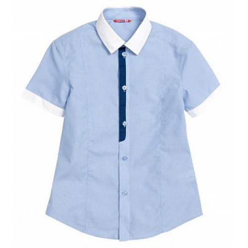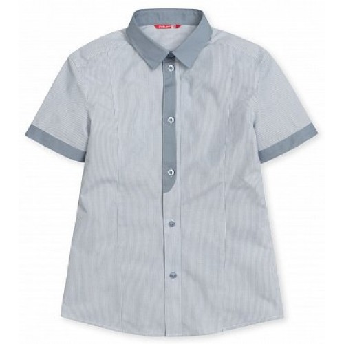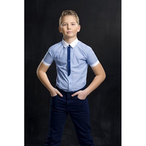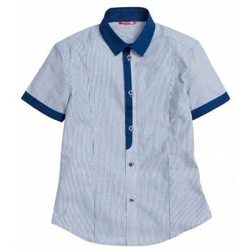 Оригинальная сорочка в полоску слегка зауженного силуэта с контрастной отделкой. Планка и внутренняя часть воротника декорирована отделкой из контрастной ткани. Коллекция - школа.