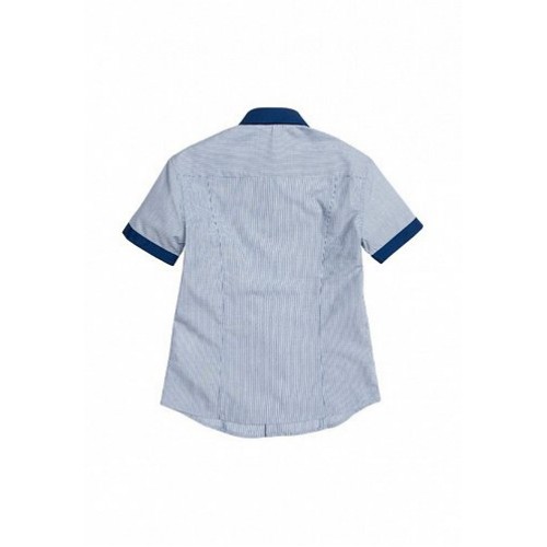 Оригинальная сорочка в полоску слегка зауженного силуэта с контрастной отделкой. Планка и внутренняя часть воротника декорирована отделкой из контрастной ткани. Коллекция - школа.