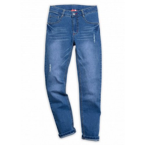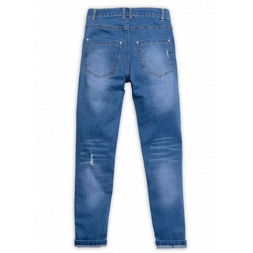 Брюки из тонкой джинсы. Эффект потертости. Декоративные контрастные отстрочки. Потайная регуляция брюк по талии, предусмотрены шлевки. Пуговицы в стиле истории.