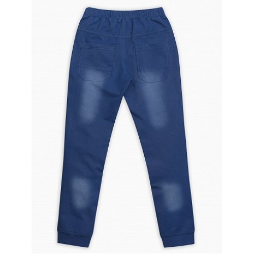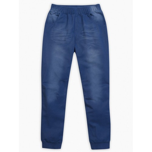 Брюки для мальчиков. Брюки "имитация джинсы": крой, детали и варка как у джинсов; по переду изделия полукруглые боковые карманы, кокетка и накладные карманы по спинке, пояс  на резине с регулировкой ширины,  манжета брюк из рибаны