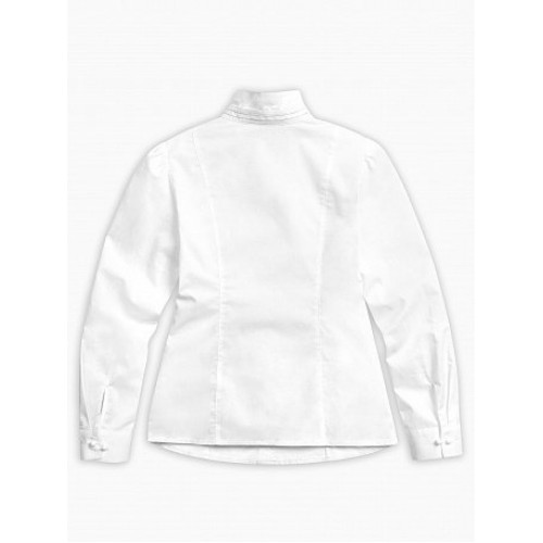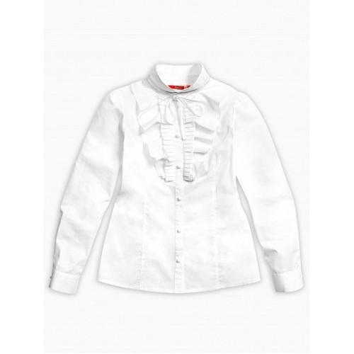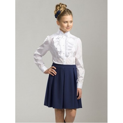 Классическая блузка. За счет сочетания широких рюш и мелкой горизонтальной складки в области груди, модель смотрится очень оригинально и торжественно, но в то же время остаётся строгой и гармоничной.