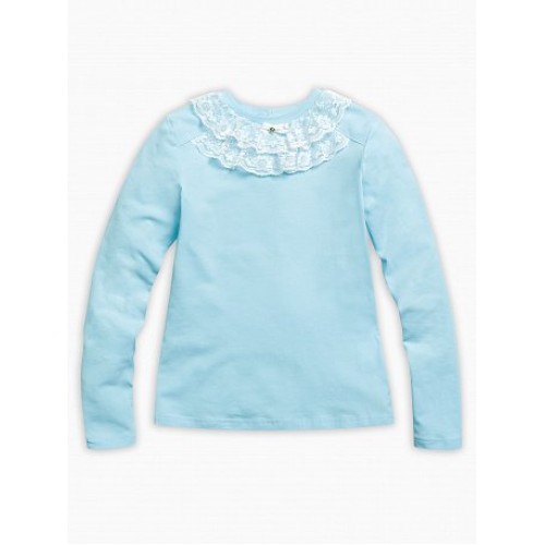 Джемпер для девочек. Новая модель джемпера. Фишка в красивом кружеве, которое создаёт нежную кружевную «пену» в воротниковой зоне. Законченность изделию придаёт маленький нежный бантик из бархатной тесьмы. Для удобства надевания сзади выполнена застежка на пуговицу.