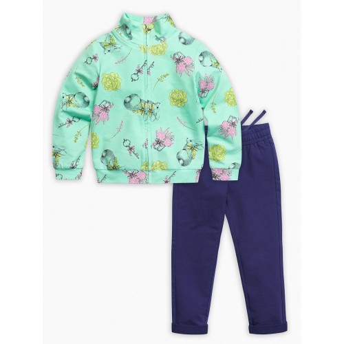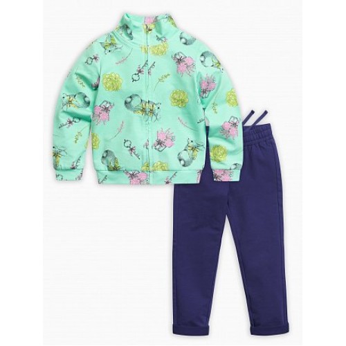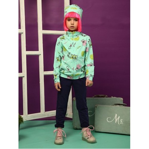 Комплект для девочек: джемпер (жакет) на молнии и брюки. Куртка умереннного объема; воротник, низ рукава и низ изделия из основной ткани. Брюки слегка зауженные к низу.