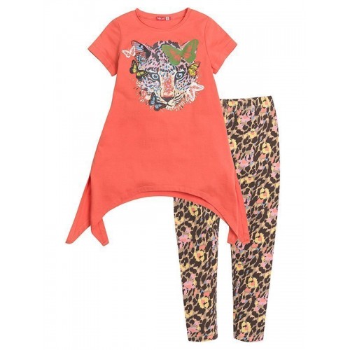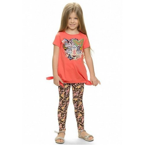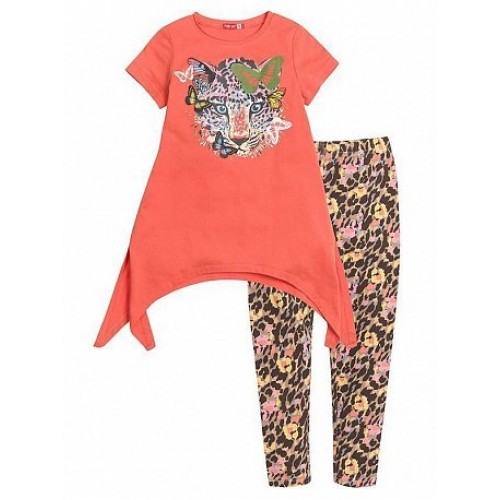 Актуально этой весной! Яркие цвета и леопардовые принты! Комплект для девочек (туника с коротким рукавом + лосины).