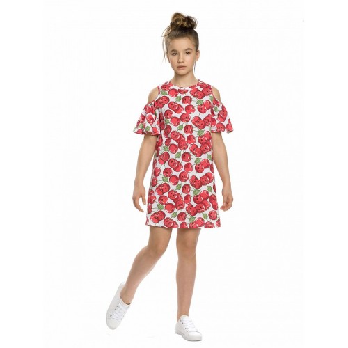 Платье для девочек. НОВИНКА! Более расширенный силуэт-трапеция с множественными фалдами по переду и спинке. Открытые плечи и рукава-воланы.