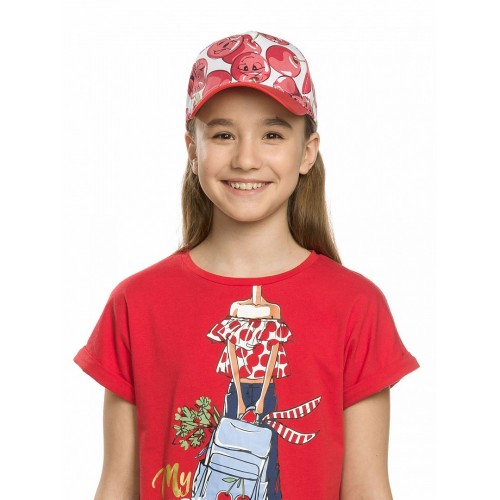 Кепка для девочек с сочным принтом-вишнями. Застёжка на липучке с регулировкой размера.
