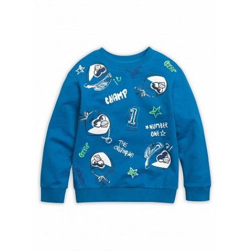 Толстовка из тонкого футера; по горловине, низу изделия и по низу рукавов манжеты из рибаны; принт в стиле небрежной ручной графики.