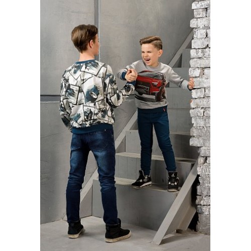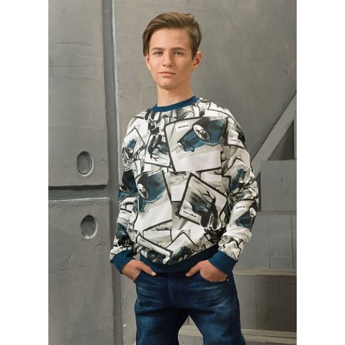 Свитшот для мальчиков. Свитшот из футера; имеет объемную форму; рукав реглан; по низу изделия и рукава манжеты из рибаны контрастного цвета.