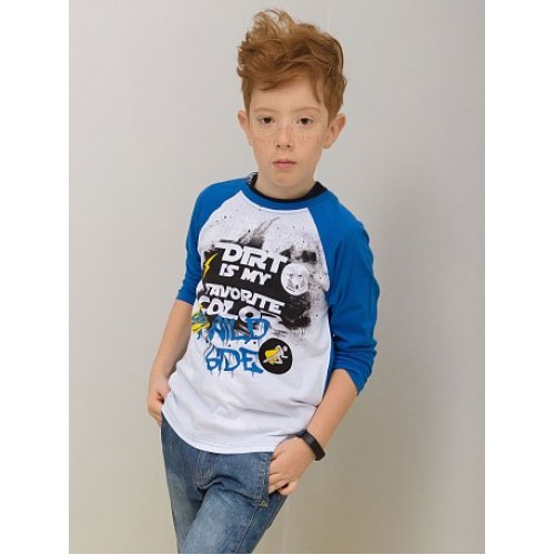 Джемпер для мальчиков. Джерси свободного силуэта, рукав реглан, горловина из рибаны; перевод принта "Грязный - мой любимый цвет"