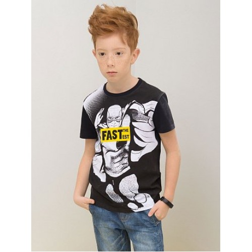Футболка для мальчиков. Принт: бегущий супер -герой с надписью "Самый быстрый"