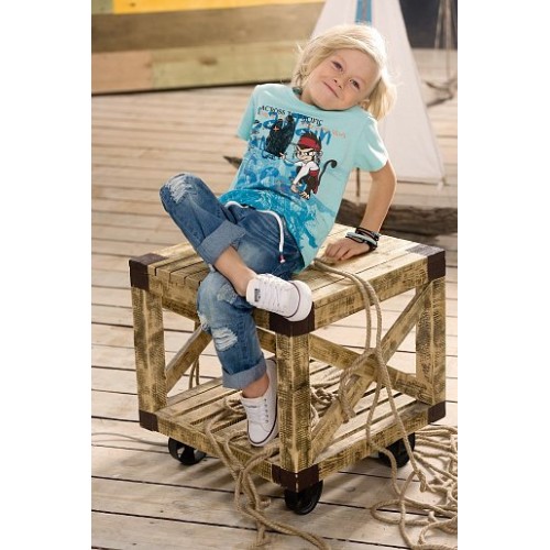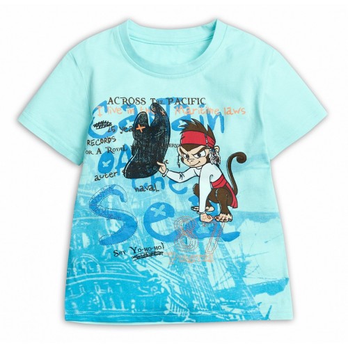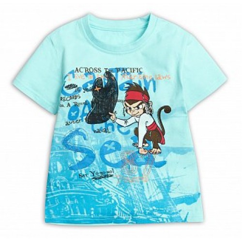 Классическая футболка с цветной отстрочкой и принтом ускользающего силуэта корабля