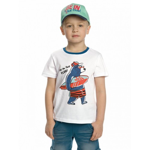 Футболка для мальчиков. Классическая футболка прямого силуэта не стесняющего движений ребенка. Декорирована центральным оригинальным принтом. Перевод принта "Вливайся, будь в потоке".