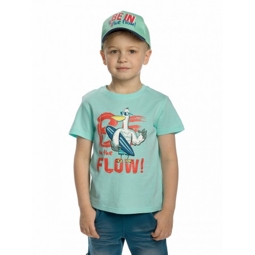 Футболка для мальчиков. Классическая футболка прямого силуэта не стесняющего движений ребенка. Декорирована центральным оригинальным принтом. Перевод принта "Вливайся, будь в потоке".