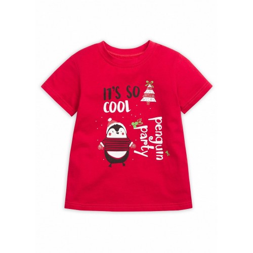 Футболка для мальчиков. Классическая футболка с центральным принтом и надписью "Это такая крутая туса пингвинов".