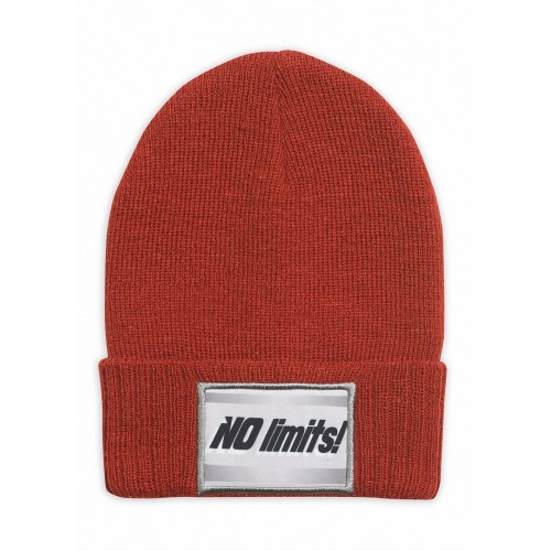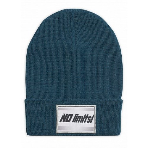 Шапка для мальчиков. Шапка двойной вязки с отворотом; нашивка с надписью "Не ограничивай себя".