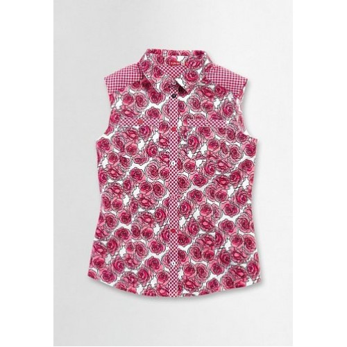 Блузка для девочек без рукавов. Особенности: тонкий плотный рубашечный хлопок.