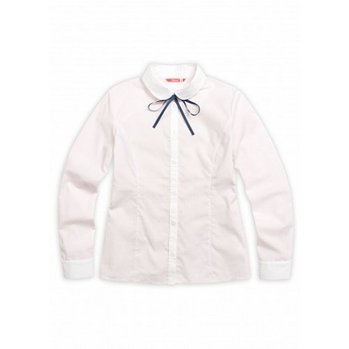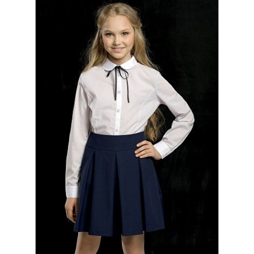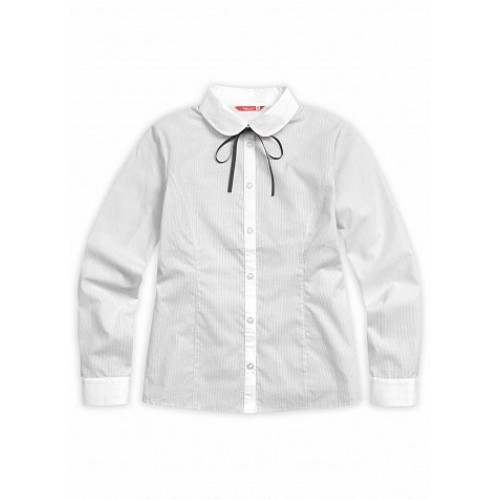 Блузка для девочек. Новое цветовое сочетание: комбинирование мелкой полоски основного цвета и белого в отделочных деталях (воротник, центральная планка, манжеты). Съёмный декоративный бантик из тесьмы.  Коллекция - школа.