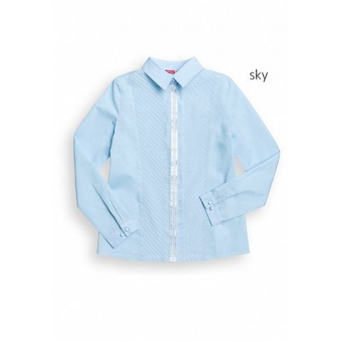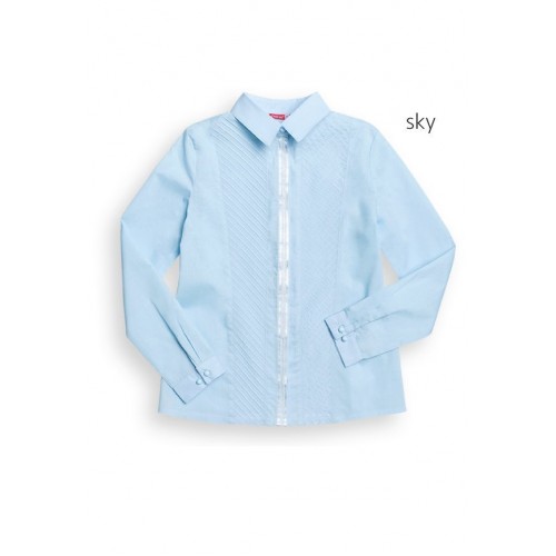 Блузка для девочек с длинным рукавом. Особенности: тонкий рубашечный хлопок с низкой сминаемостью, атласная тесьма. Коллекция - школа.