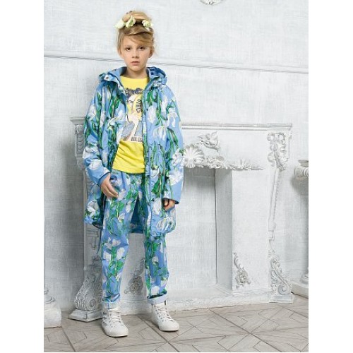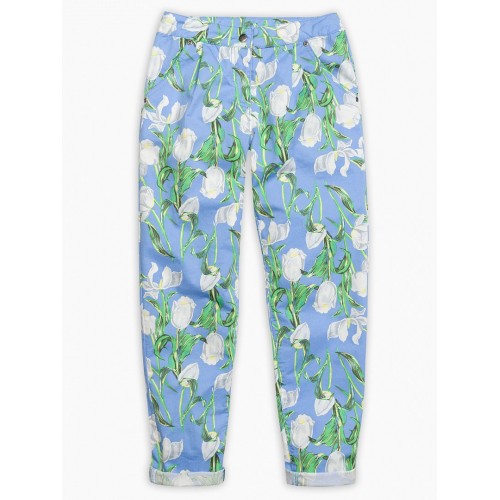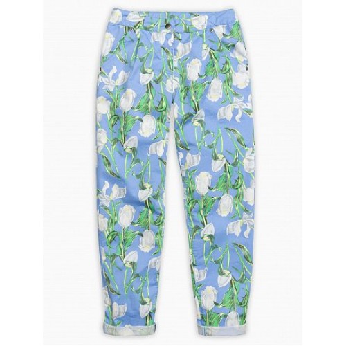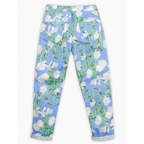 Брюки для девочек. Свободный объем, можно носить с подворотами и без. Застежка- замок в гульфике. В поясе внутренняя резинка и пуговицы- для регулировки объема. Принт в структуре ткани.