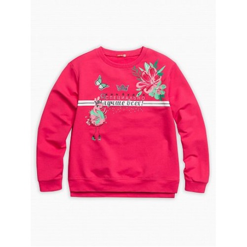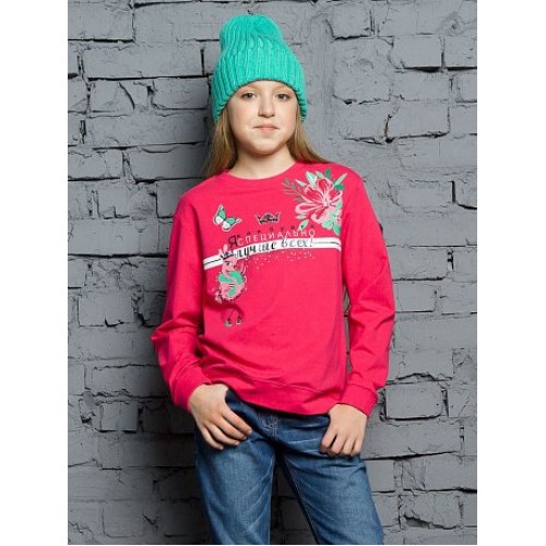 Толстовка для девочек. Новинка: более увеличенный объем ; мягкая линия плеча; по низу изделия манжета с перепадом длины переда и спинки с разрезами по бокам; горловина и низ рукава из рибаны.