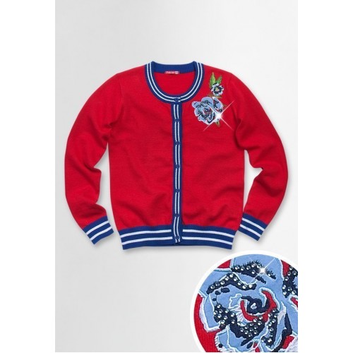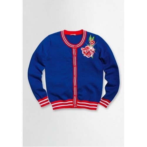 Жакет для девочек с длинным рукавом на пуговицах. Модель декорирована красивой вышивкой со стразами.