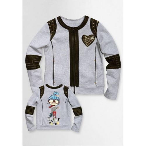 Жакет для девочек на молнии, с длинным рукавом. Принт металлик, аппликация, вышивка, стразы, метал. декор, иск. кожа.