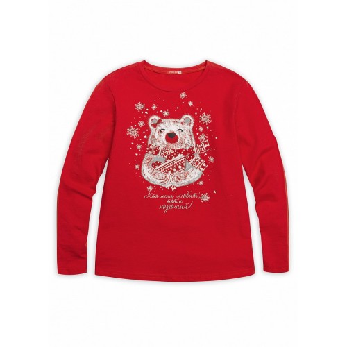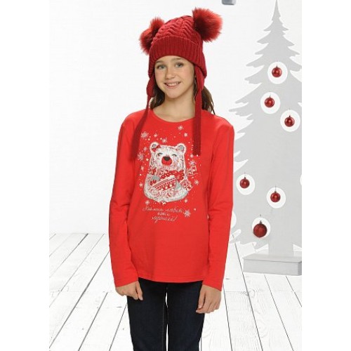 Джемпер для девочек. Центральный принт - зимний мишка; горловина из рибаны.