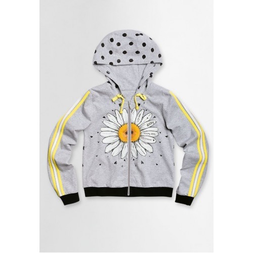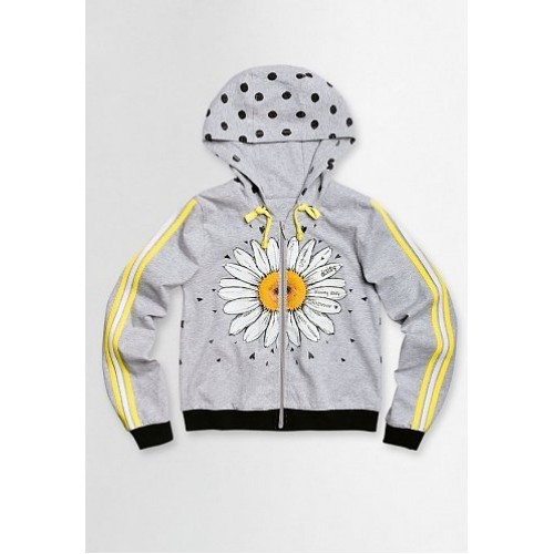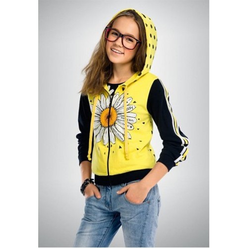 Жакет для девочек на молнии, с длинным рукавом, с капюшоном. Принт металлик.