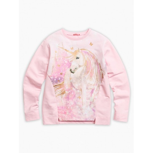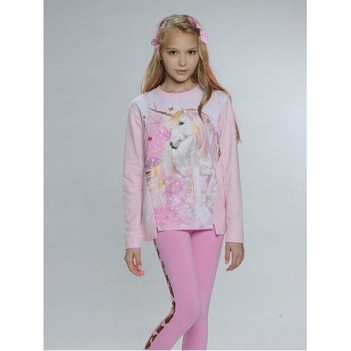 Толстовка для девочек. Толстовка свободного силуэта, немного заужена к низу, боковые швы переведены на перед, спущенное плечо; горловина из рибаны.