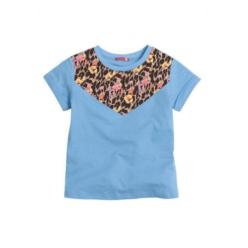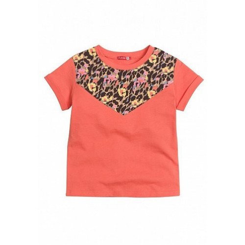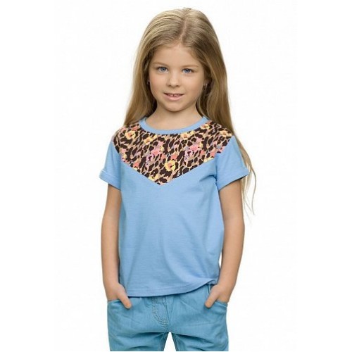 Леопард в оттенках персика и папайи – тренд весенней моды! Джемпер (модель «футболка») для девочек. Особенности: декоративная кокетка.