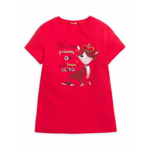 Футболка для девочек. Классический крой, умеренный объём, естественный плечевой пояс, металлизорованный принт.