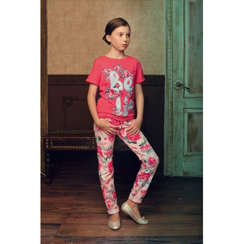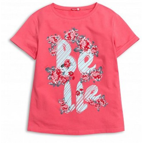 Трикотажная футболка с принтом "BELLE" то выглядывающим, то утопающим в цветах.
