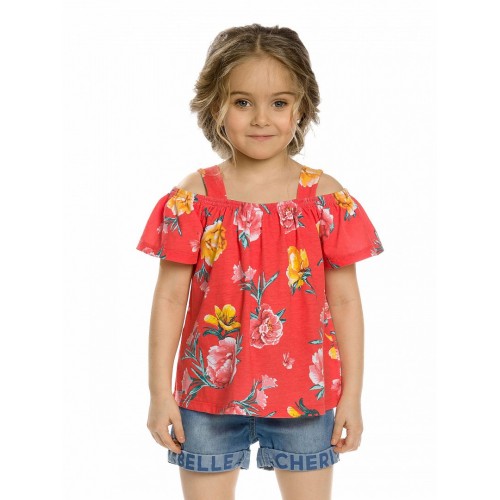 Майка для девочек. НОВИНКА! Более расширенный силуэт с множественными фалдами по переду, спинке и рукавам. Открытые плечи и лямки придают майке лёгкость и романтичность.