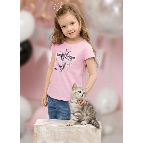 Футболка для девочек. Футболка свободного силуэта, рукав втачной, с отворотом по низу, прочный мягкий SOFT-принт с мерцающими блеском!