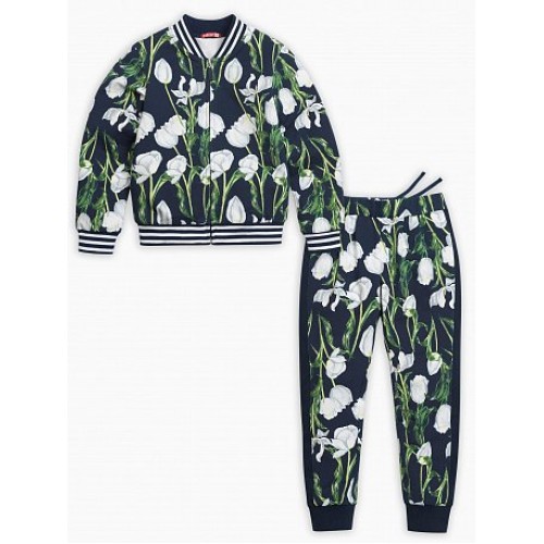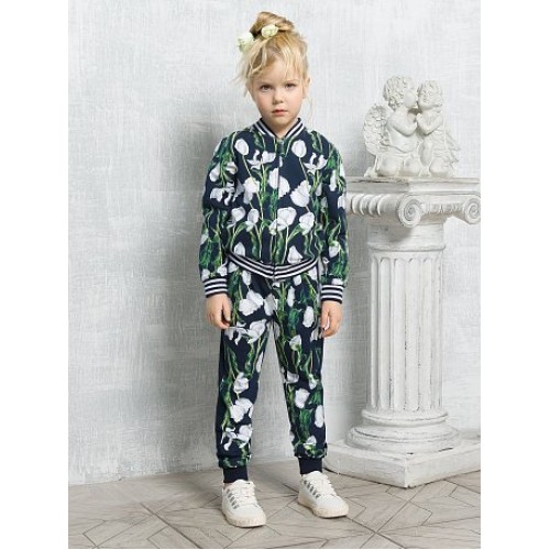 Комплект для девочек: джемпер (жакет) на молнии и брюки. Новинка ткани! Футер с эластаном, шелковистый и мягкий. Бомбер прямого силуэта, воротник-стойка, манжеты низа и рукавов из полосатой рибаны. Стойкий мягкий soft-принт, не резиновый. Брюки силуэта "кэррот" (зауженные к низу), с защипами по талии, с боковыми контрастными лампасами, по низу манжеты из основной ткани, в поясе- внутренняя широкая резинка и шнурок.