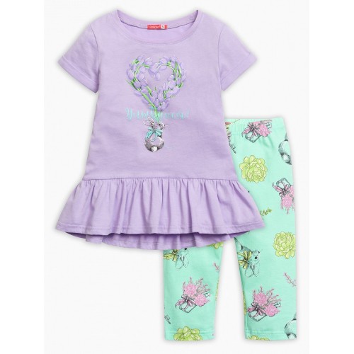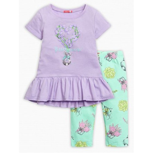 Комплект для девочек: туника и лосины. По линии низа перепад переда и спинки; по низу рукава отворачивающаяся манжета.