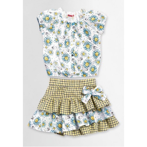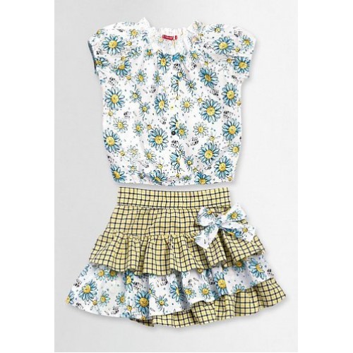 Комплект для девочек (блузка с коротким рукавом + юбка), тонкий плотный рубашечный хлопок