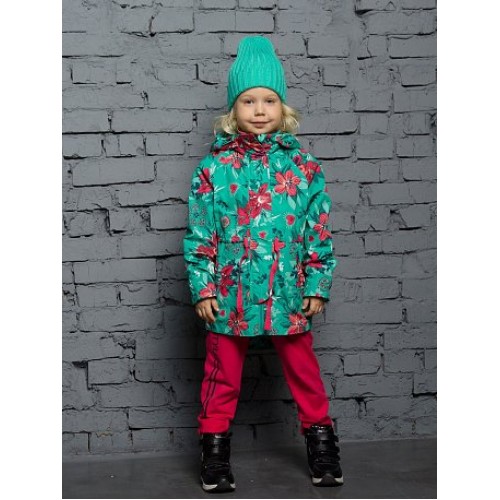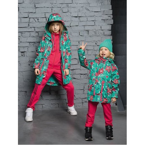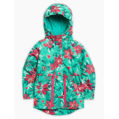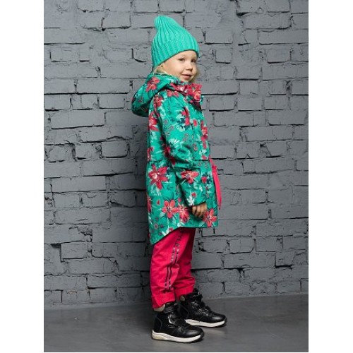 Ветровка для девочек.Температурный режим:   до +10°С.  Удлинённая парка с перепадом длины по спинке и переду. Рукава «реглан». Двухшовный неотстегивающийся капюшон с регулировкой объема. Трикотажный воротник из рибаны. Курточная ткань с двусторонним водооталкивающим покрытием. Широкая ветрозащитная планка. Боковые карманы оформлены листочкой. Кулиска с широкой декоративной тесьмой регулирует объем парки по талии. Внутренняя манжета по низу рукава из рибаны.