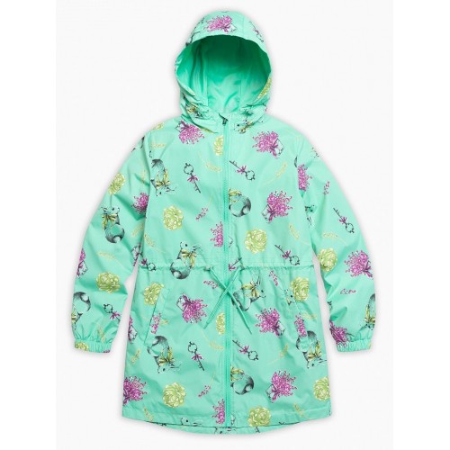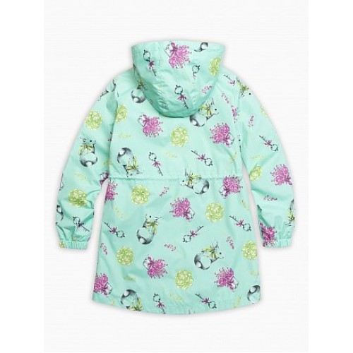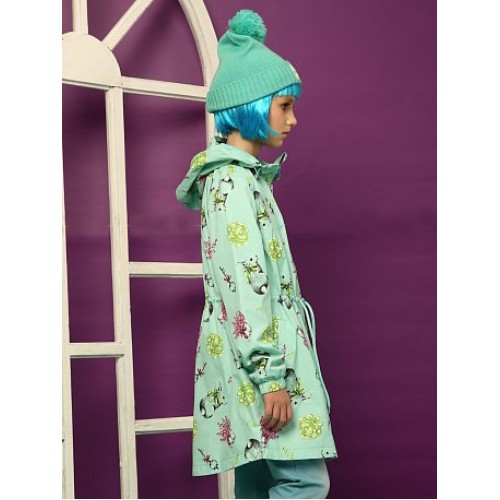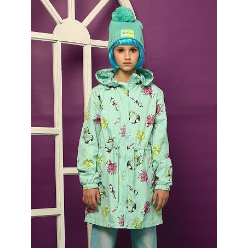Плащ для девочек. Температурный режим: до +10°С. Удлинённая парка с перепадом длины по спинке и переду. Двухшовный неотстегивающийся капюшон с регулировкой объема. Тракторные молнии. Курточная ткань с двусторонним водооталкивающим покрытием. Боковые карманы снаружи оформлены листочкой. Кулиска со шнуром регулирует объем парки по талии. Манжета рукава на резинке.
