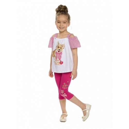 Укороченные лосины для девочек. На одной брючине принт - розы.