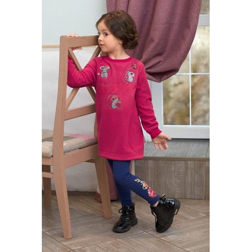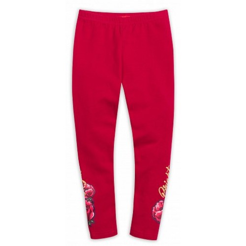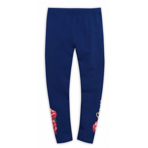 Брюки для девочки, трикотажные, облегающие. С ярким принтом сбоку.