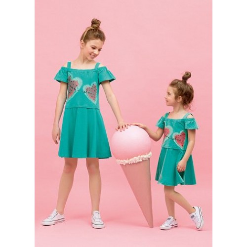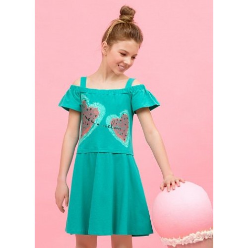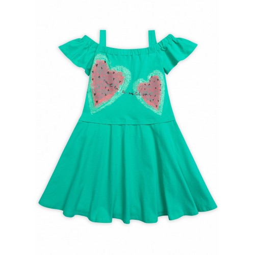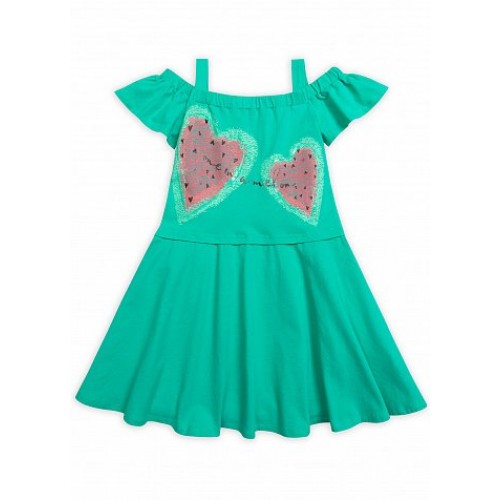 Платье для девочек. Новинка! Платье - сарафан из тонкого хлопка. Открытые плечи на лямках, присборенные рукава-воланы, расклешённая юбка. Центральный принт в сочных арбузных цветах.