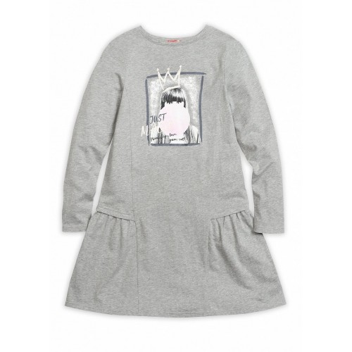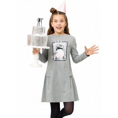 Платье для девочек. Силут трапеция, по низу спинки и боковым частям - волан. Центральная часть переда с мягким прочным SOFT-принтом с мерцающим блеском!