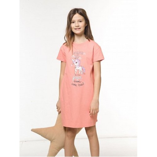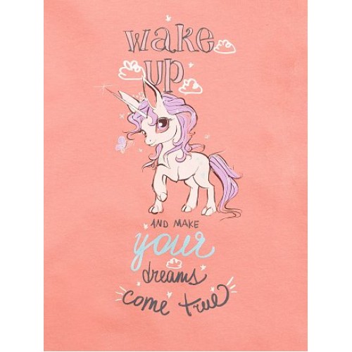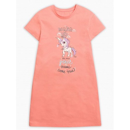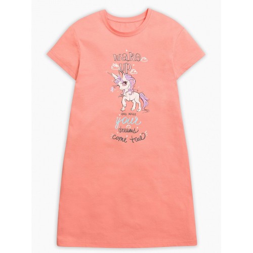 Ночная сорочка для девочек. Сорочка выполнена в нежном персиковом цвете. Центральный принт - волшебный пони и надпись (перевод) "Проснись и воплоти свои мечты".