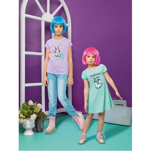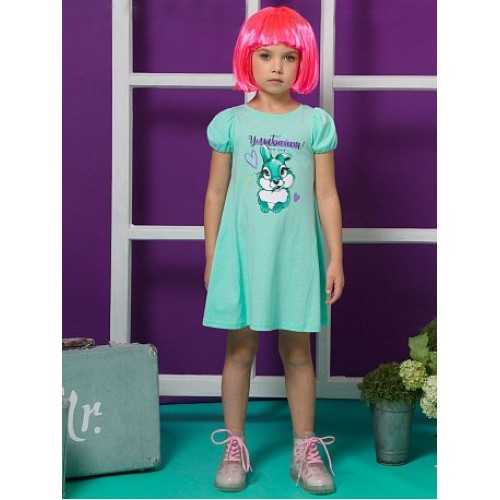 Платье для девочек. Силуэт трапеция; вертикальное членение по переду и спинке; двойной рукав "фонарик", по низу на резинке.