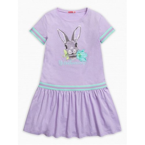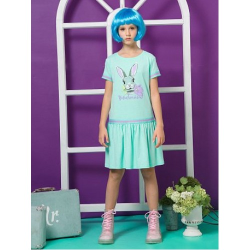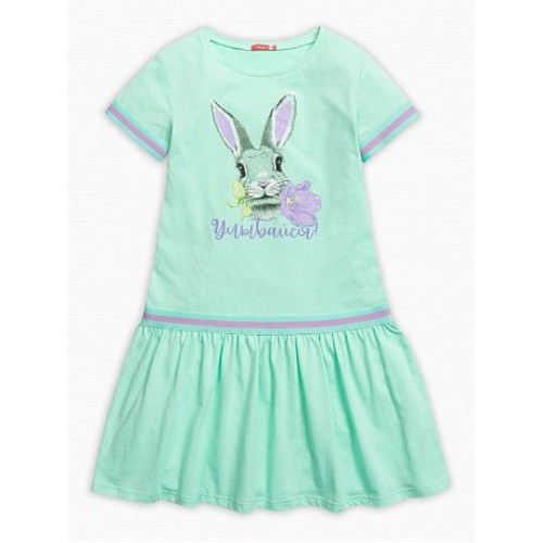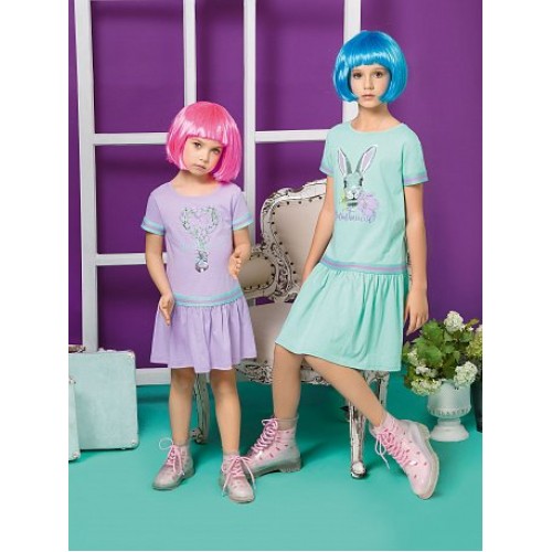 Платье для девочек. Отделка трикотажной тесьмой "триколор" в области членения юбки и по низу рукава.