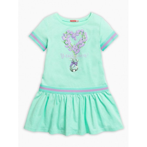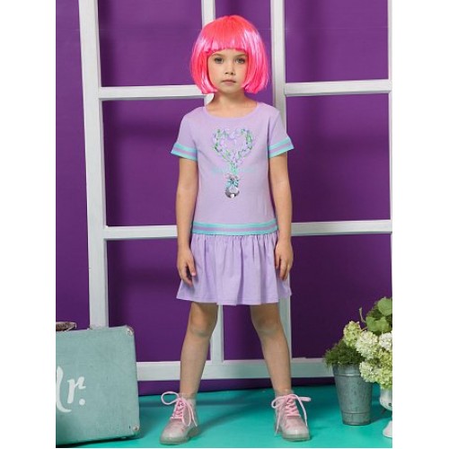 Платье для девочек. Отделка трикотажной тесьмой "триколор" в области членения юбки и по низу рукава.