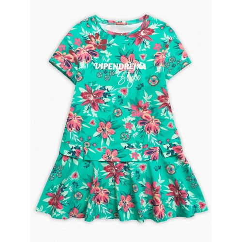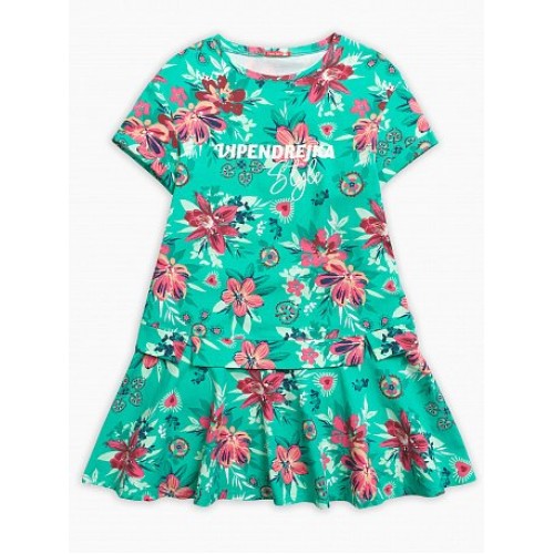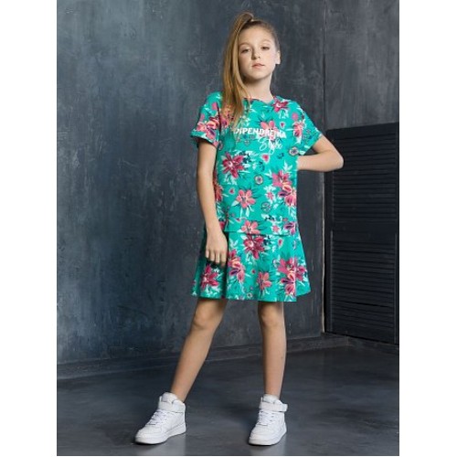 Платье для девочек. Имитация юбки и футболки на выпуск; по низу рукава отварачивающаяся манжета; перевод принта "Выпендрежка.Стиль".